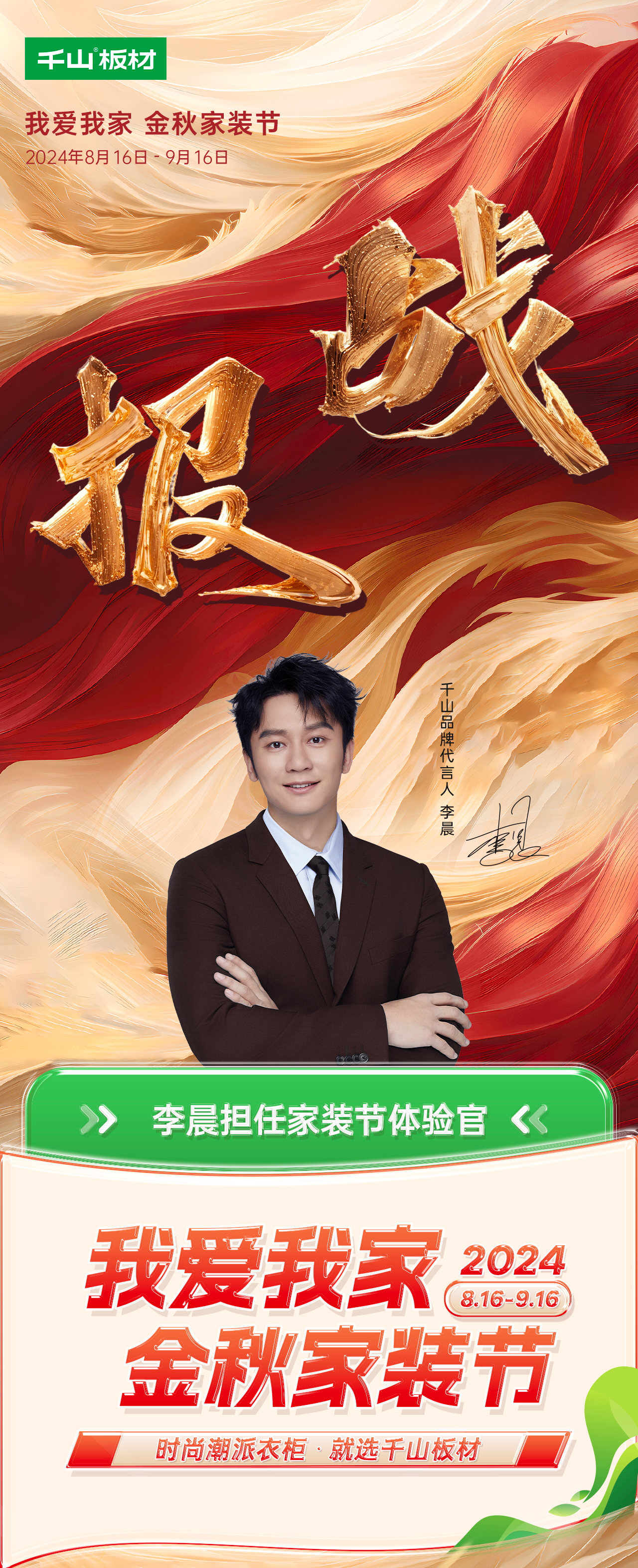 8月16日,千山金秋家裝節火爆上線,截至9月16日,為期30天的家裝節活動日前正式落下帷幕?;顒悠陂g,千山板材全國1500+門店聯動,全網曝光量超8500萬、線上直播觀看量超2000萬、簽約數量達3500+,實現了品牌聲量和銷售業績的雙豐收!