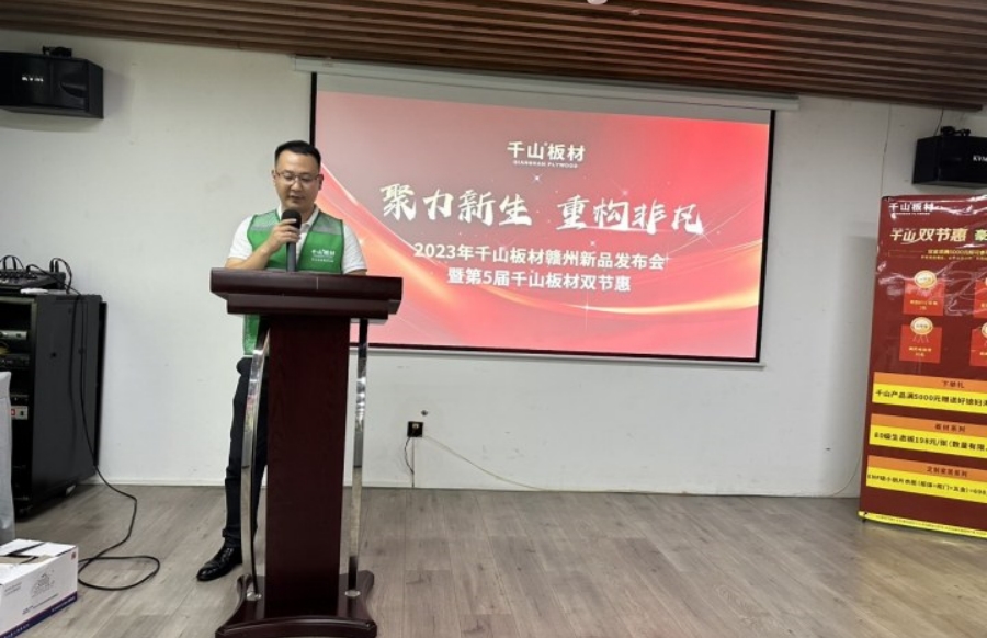 千山板材贛州總代理周志軍向參會嘉賓講解了市場目前現(xiàn)狀,未來發(fā)展趨勢,表示公司產(chǎn)品配套齊全,品類豐富,一定能滿足消費者多樣性需求。