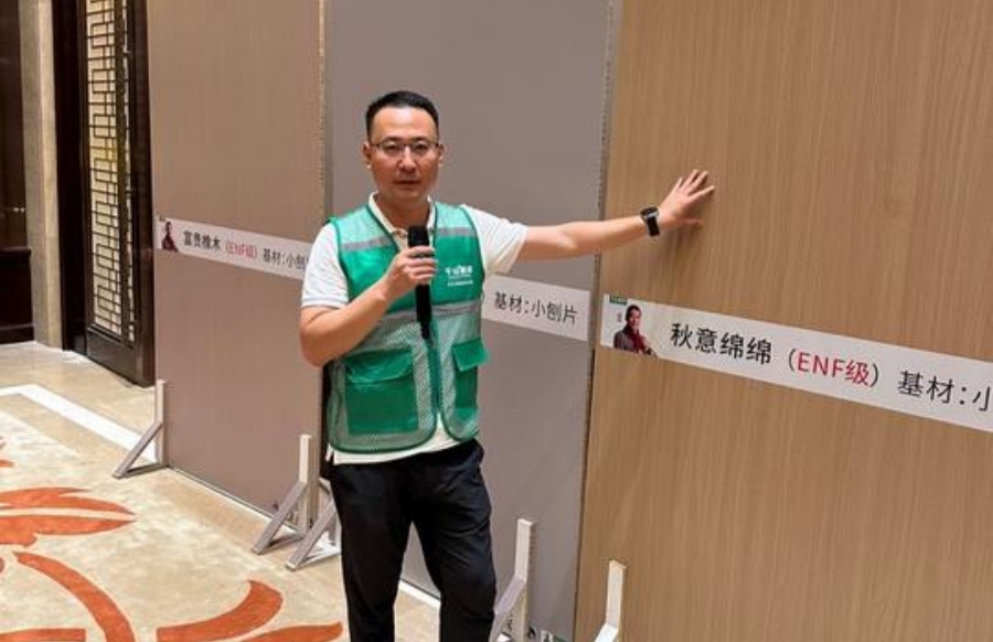 下午2點,千山新品發(fā)布會開始。千山板材南大區(qū)經(jīng)理滿彬分享了千山板材對產(chǎn)品的不斷鉆研與創(chuàng)新,對產(chǎn)品質(zhì)量的嚴格把控,只希望為消費者帶來健康、環(huán)保的家,讓消費者過得舒心、安心。