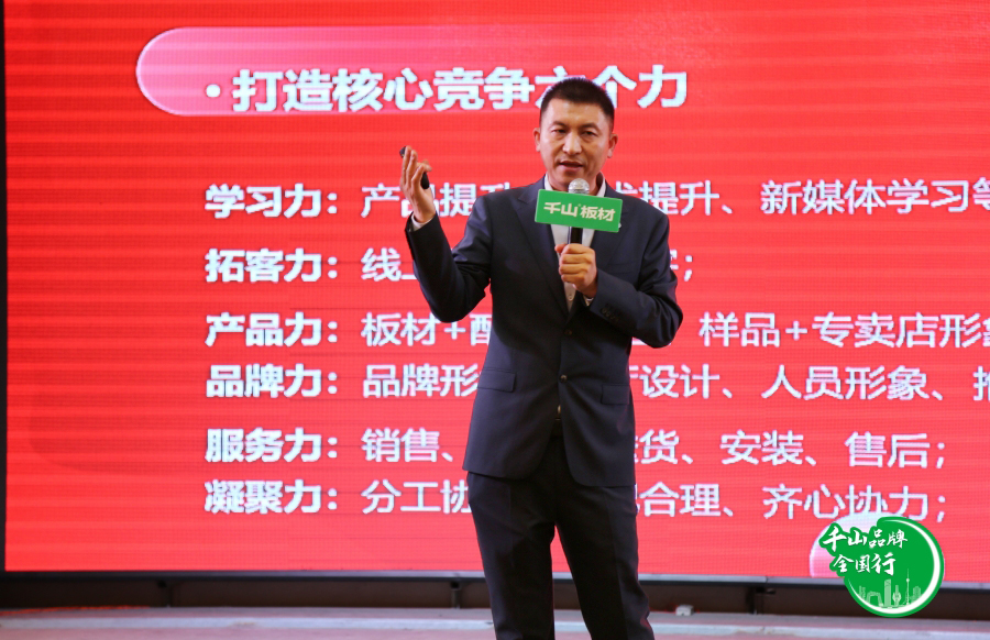千山板材區域經理高平紅對千山的成長歷程、品牌升級戰略、產品優勢進行詳細介紹。千山板材在全國已擁有1000+品牌專賣店,快速發展的背后,是千山與全國合作伙伴的緊密協作、攜手共進。