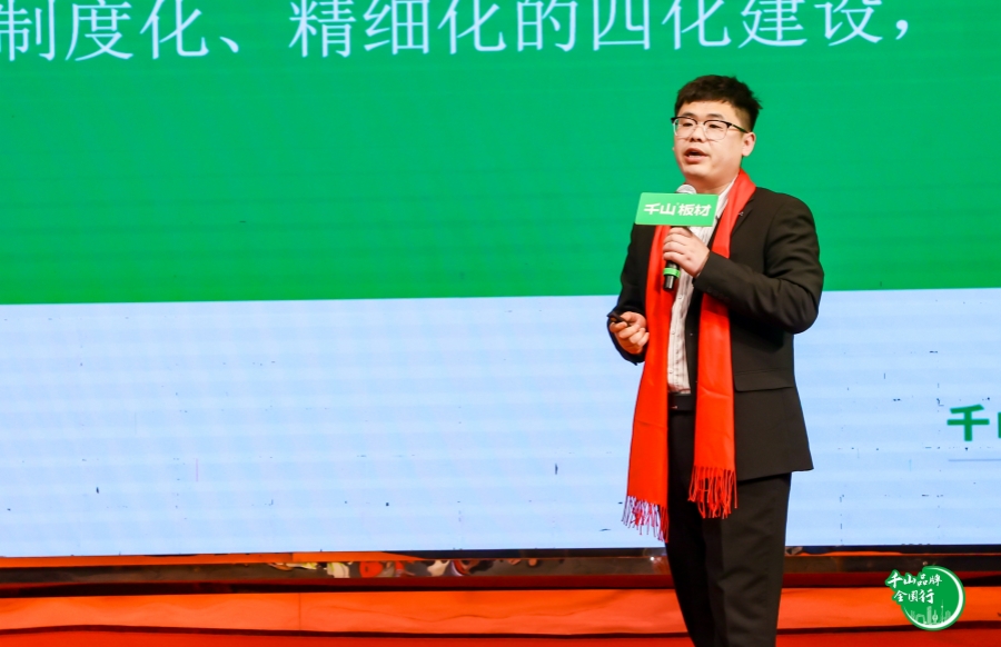 千山板材銷售部總監董向陽致辭。董總分享到,當前的市場環境競爭激烈,要聚焦產品和服務,協同一系列營銷組合拳,才能支撐業務的高速增長,千山將和伙伴們攜手共進,合作共贏。