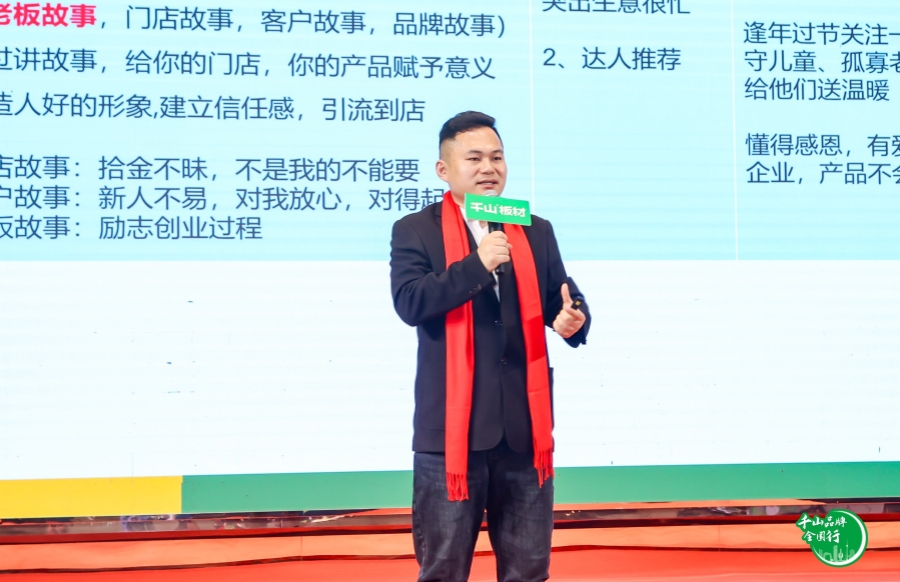 千山板材品宣經理張新江分享了《全國加盟商短視頻同城引流系統》,為大家提供了全新的新媒體營銷思路,通過案例分析、賬號定位、作品輸出等全方位策略賦能,助力伙伴們在同城流量競爭中占據優勢。
