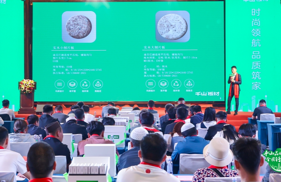 活動現場,千山板材全新產品驚艷亮相,并由大區經理史生平進行產品解讀。千山聚焦市場和用戶需求,將工藝、功能、美學貫徹到產品升級中,打造更全、更精的產品體系。
