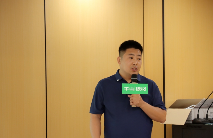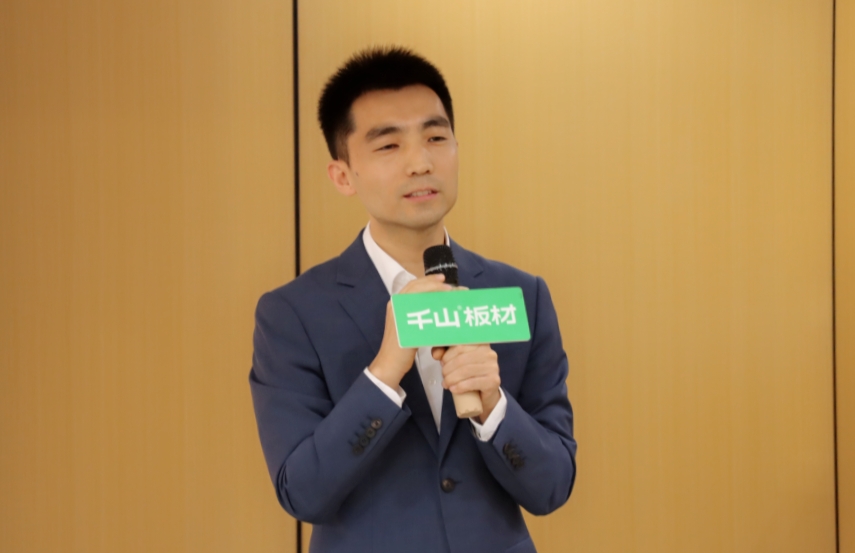 千山品牌事業部總經理王松發表講話,王總對各位伙伴的到來表示歡迎。王總分享到,全屋定制工廠和家具廠一直是千山關注的重點,千山家具板現貨倉的快速布局順應了全屋定制訂單制和板材倉儲式的必然趨勢。山東倉和四川倉的成功啟動是全國現貨倉戰略布局的良好開端,相信現貨倉一定會助力定制工廠的伙伴們實現更快發展。