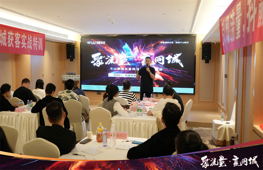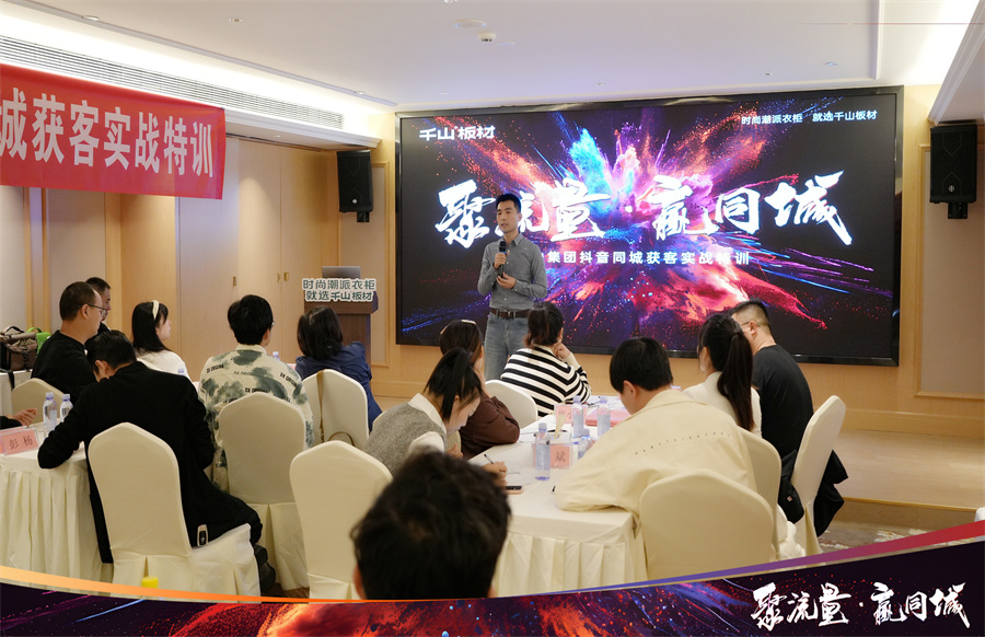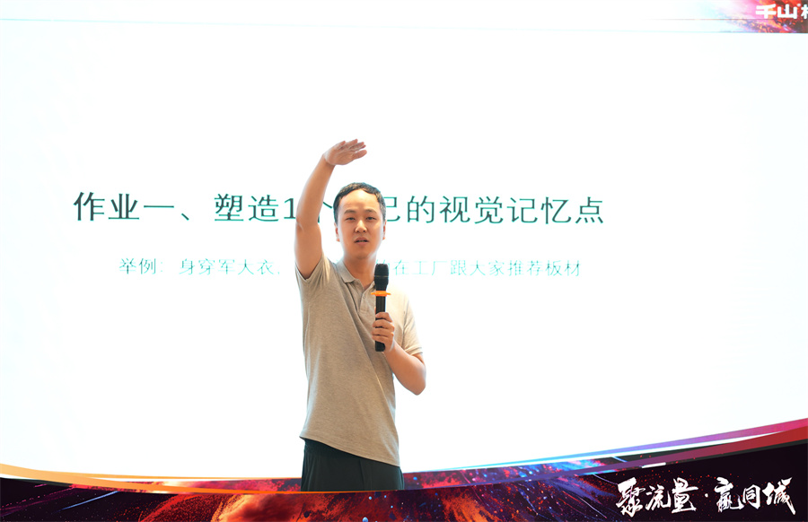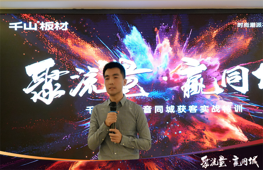 2024年千山著重發(fā)力線上渠道,通過抖音同城獲客引導(dǎo)經(jīng)銷商伙伴們突破自我,入局賽道,通過持續(xù)的線上轉(zhuǎn)化促進(jìn)業(yè)績增長。千山集團品牌運營中心于昆總監(jiān)為大家解讀了“板材生意”增長的“新渠道、新營銷、新增量”,通過多樣化的營銷策略,打造線上社媒傳播陣地,最終賦能終端。