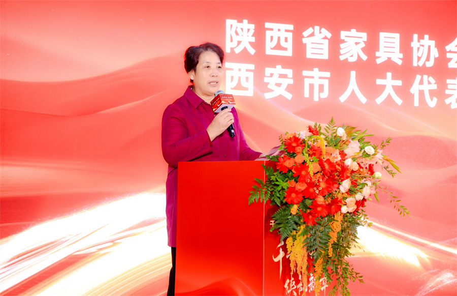陜西省家具協(xié)會會長靳喜鳳女士上臺致辭。靳會長為陜西倉送上了開業(yè)祝福并表示,千山板材陜西倉是對家具產(chǎn)業(yè)鏈優(yōu)化和服務升級的積極探索,是連接消費者與優(yōu)質(zhì)家具產(chǎn)品的橋梁,將為陜西家具市場注入新的活力。