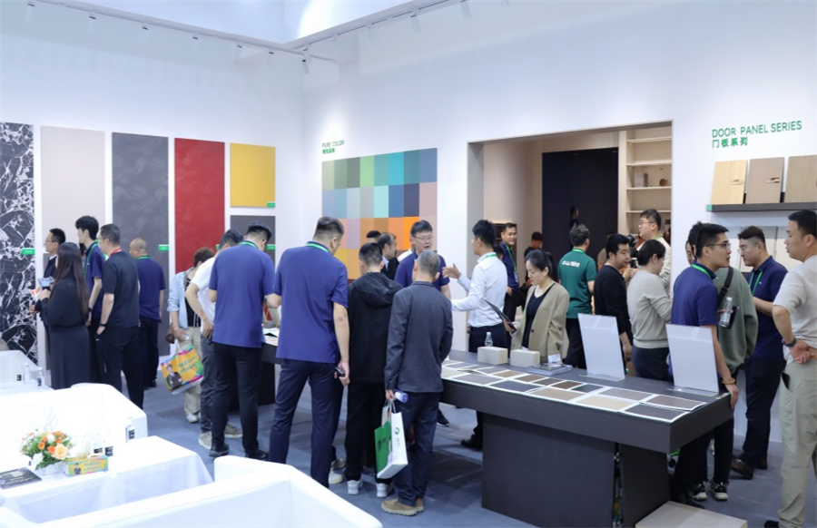 千山板材“綠BOX”展館C位出道,成為展會靚麗的風景線,關注度持續爆棚,吸引了眾多觀展商、媒體達人、行業大咖、專業觀眾前來探“秘”,感受和記錄千山板材的魅力和商業模式進階,讓更多的人了解千山板材。
