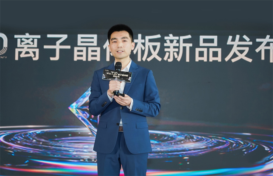 領導嘉賓們共同登臺,進行T20離子晶體板首發的啟動儀式。千山T20離子晶體板的正式上市,不僅標志著千山板材正式邁入“離子晶體板”時代,更預示著千山向著更高智造標準跨越式進階。