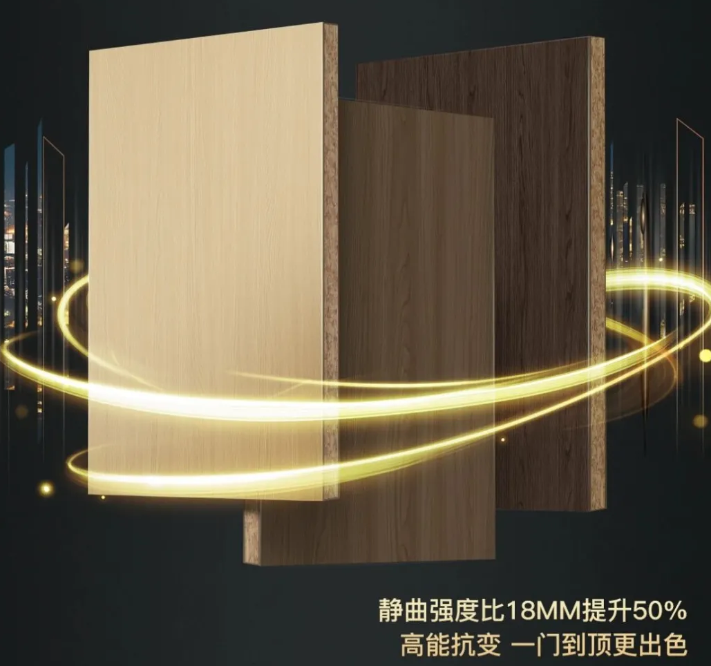 離子晶體層的強化效應,使板材在長期承受外力作用時保持結構穩定性,有效降低形變風險,同時在20mm厚度的加持下,板材的靜曲強度提升了50%,使“一門到頂”的設計更穩固,從容應對南北地區不同環境條件及氣候變化帶來的挑戰。