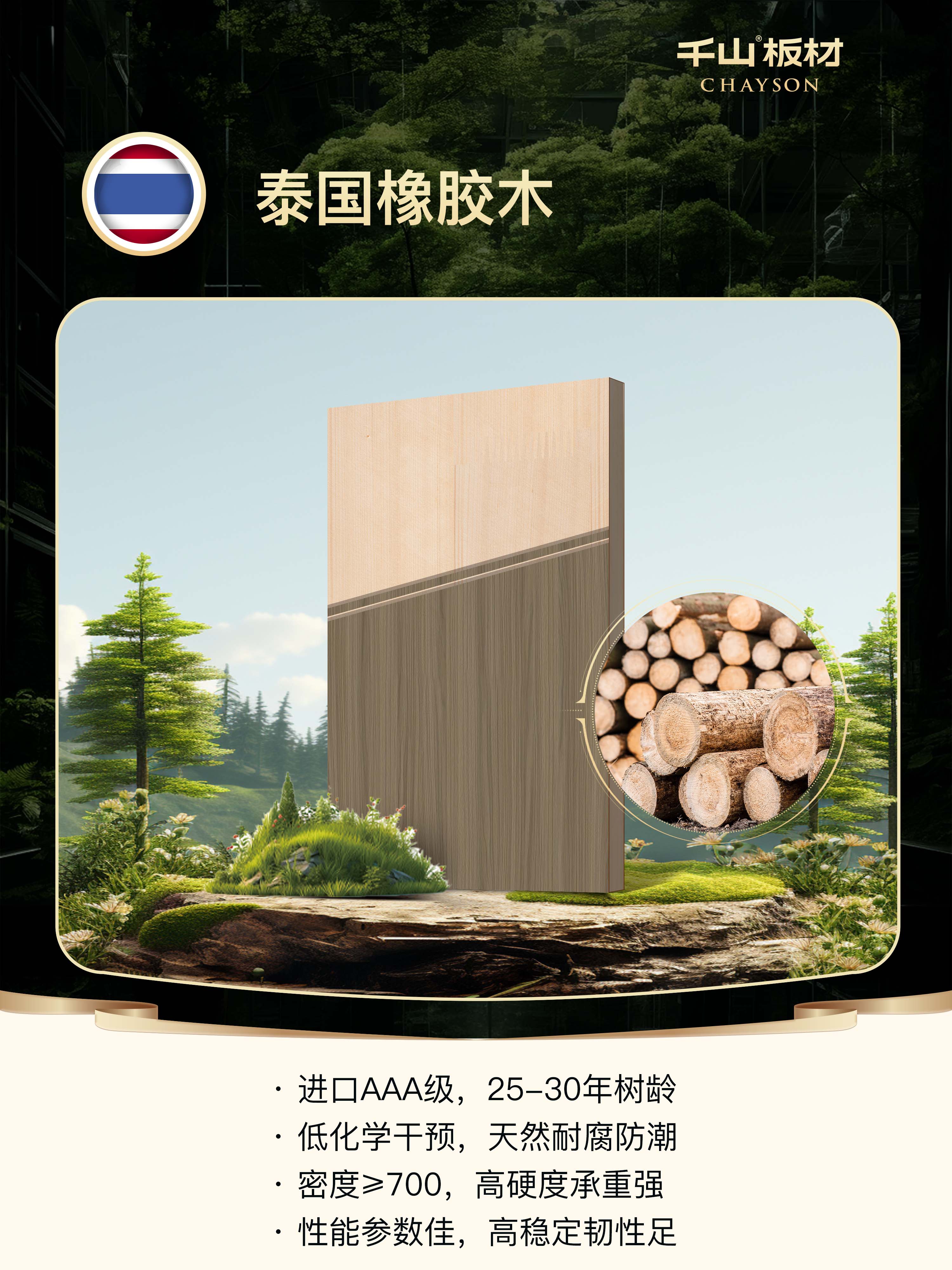 泰國(guó)橡膠木樹齡約25-30年,密度≥700,木質(zhì)較硬,穩(wěn)定性高。天然耐磨性、耐腐蝕性,防潮性等參數(shù)俱佳。