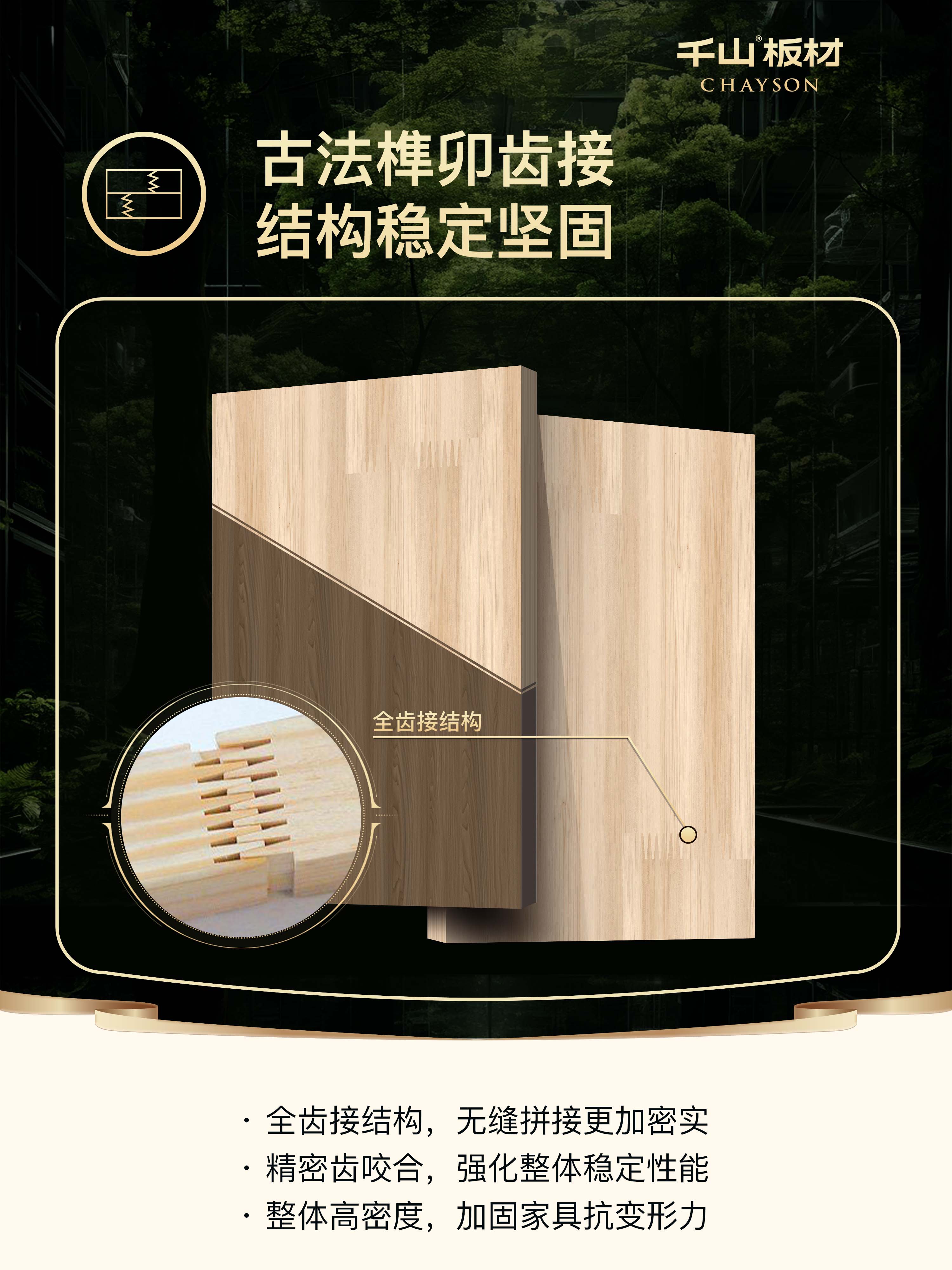千山原木板采用全齒接工藝,通過精密咬合結(jié)構(gòu)強(qiáng)化整體穩(wěn)定性,既保留木材的自然屬性,又顯著優(yōu)化承重性能,握釘力更強(qiáng)。