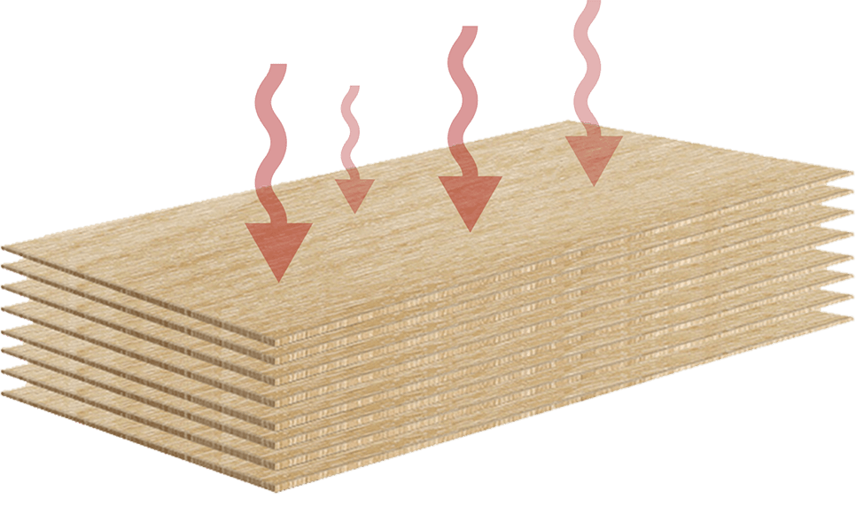 層層夾芯經過阻燃劑的高壓浸泡長達4小時,保證木纖維的完全滲透